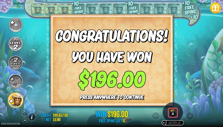 Bigger Bass Splash a un RTP de 96,5 %, ce qui est similaire aux autres machines à sous de la série Big Bass et est considéré comme un bon RTP.